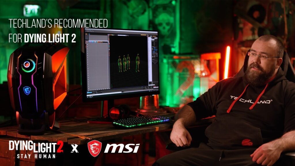 Olá, sou Michael Stefananski, estou dirigindo o departamento de captura de movimento aqui na Techland. Trabalho aqui há 12 anos. Fui responsável pela captura geral de movimento como em gravações, atores e todo o jazz. Os jogadores esperam uma exploração incrível da cidade de Villedor, e acho que eles ficarão muito satisfeitos com todos os aspectos do combate misturados ao parkour. O maior desafio foi a carga de trabalho, pois tivemos cerca de 500 dias de gravação, e isso gerou muito material que tivemos que trabalhar e colocar no jogo. Eu diria que os produtos MSI são muito confiáveis, os testes que fizemos, em diferentes configurações, nunca falharam.